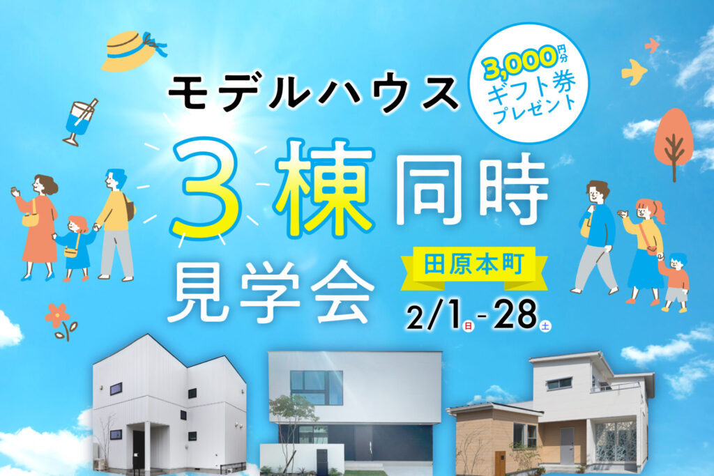 【2/28(土)まで】3棟同時見学フェア<田原本最大級!家づくり初心者のための無料イベント>