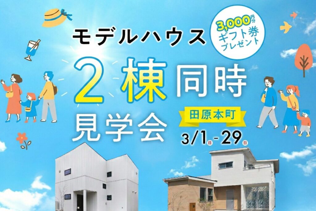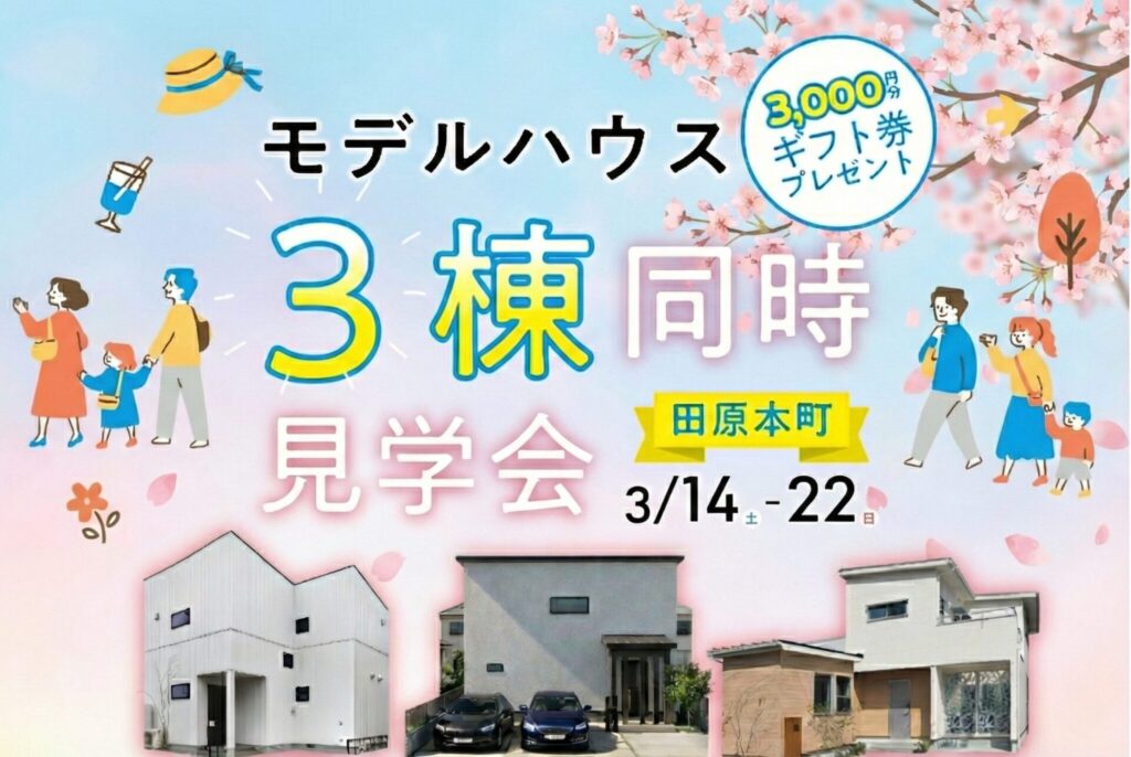 【3/14sat-22sun】3棟同時見学フェア<田原本最大級!家づくり初心者のための無料イベント>