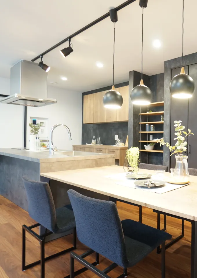 ナチュラルテイストの内観とかっこいい外観のブラックのスタイリッシュなお家