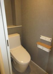 グレー系のクロスでまとめたトイレです。