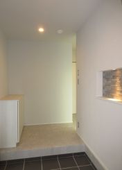 玄関ドアを開けると正面にエコカラットを貼ったニッチが見える玄関ホールです。