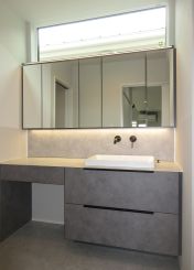 巾1,650mmの洗面化粧台を設置した洗面所です。