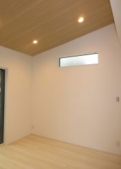 勾配天井のクロスは、木目調です。