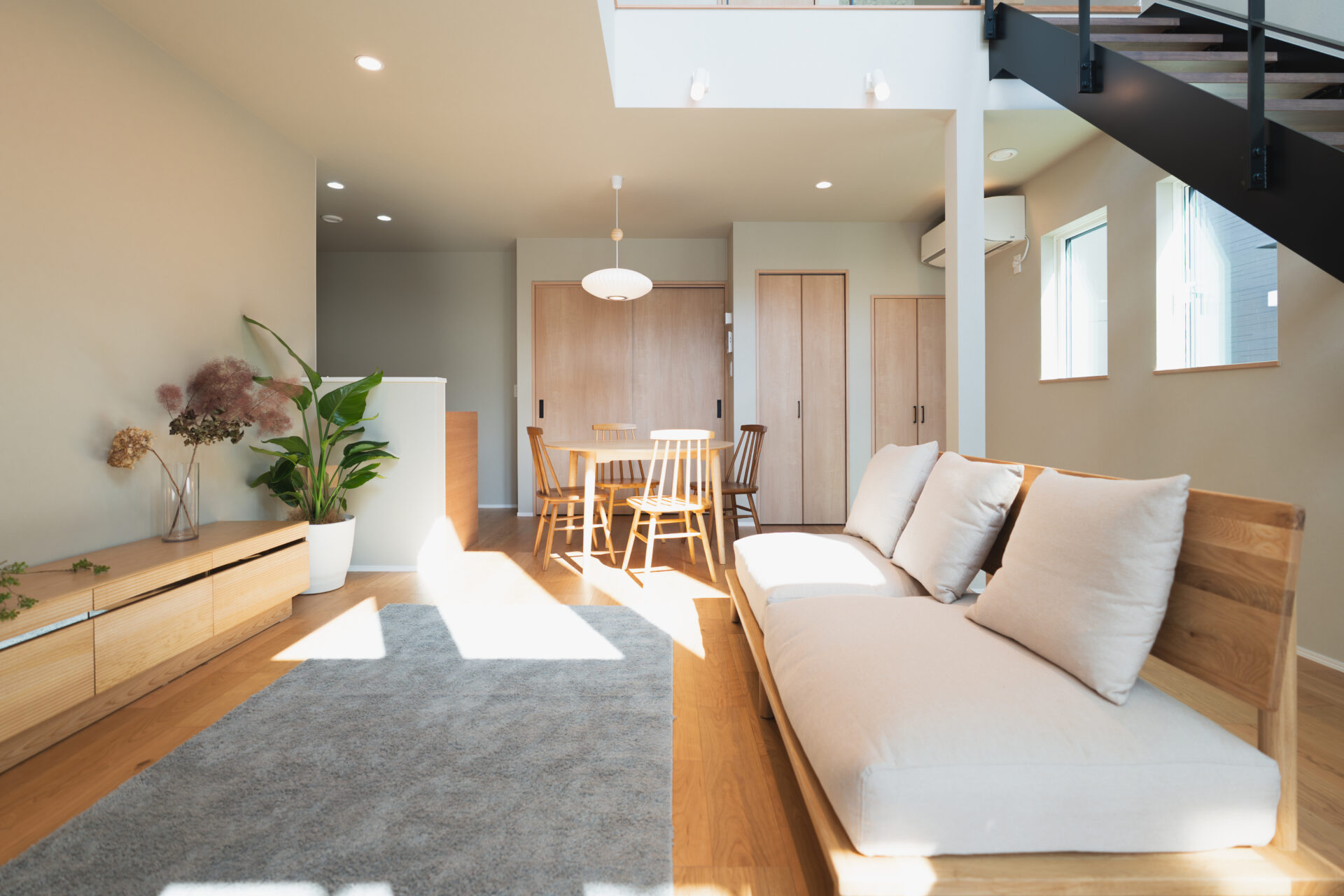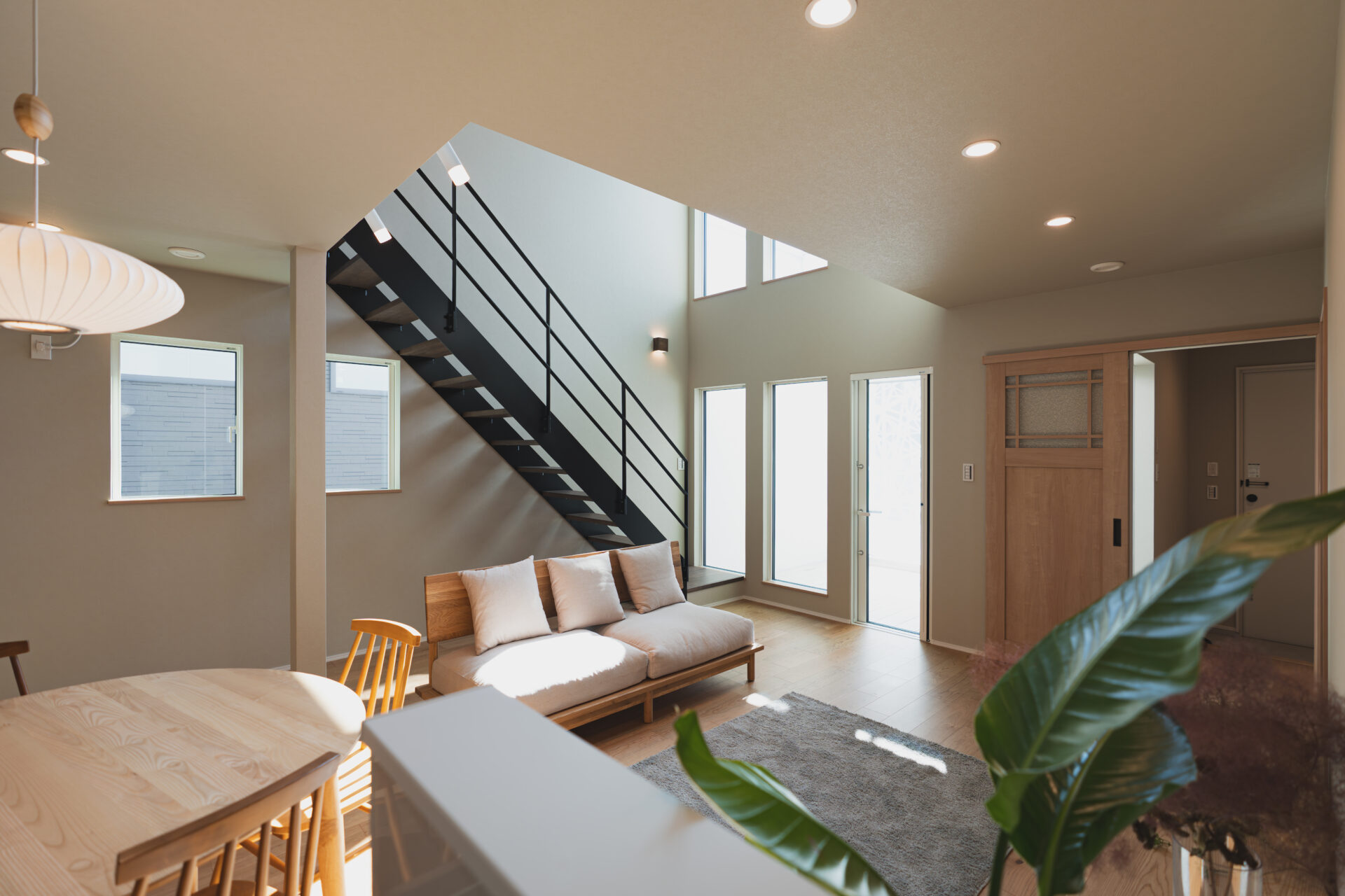 光に満ちた吹き抜け空間が、家族の日常を豊かに彩ります。