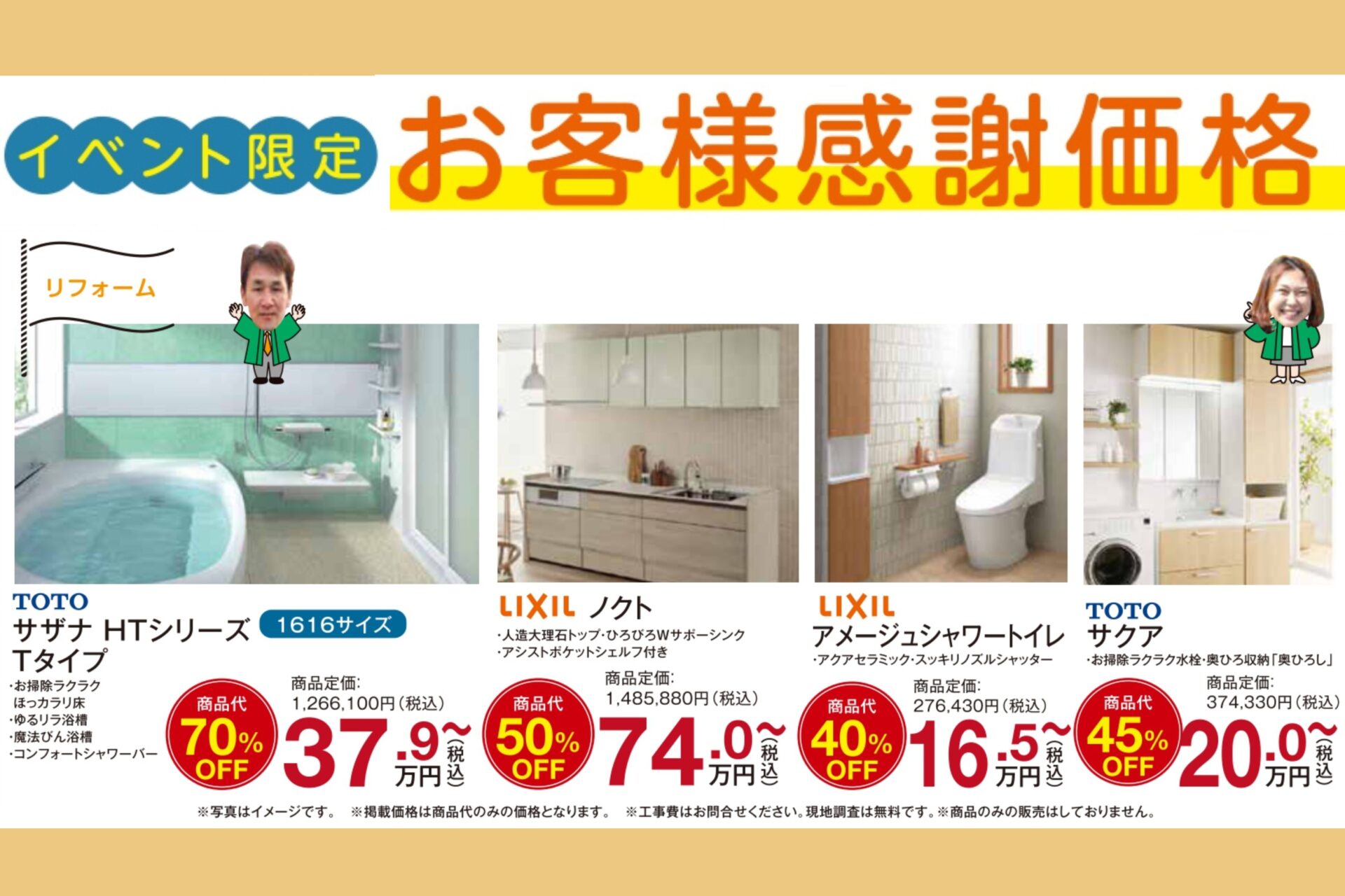 イベント限定で、人気のTOTO・LIXIL製品をお客様感謝価格にてご提供いたします。