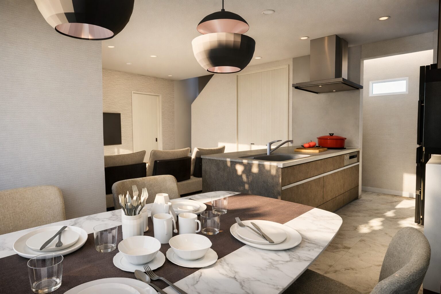 キッチンからダイニング・リビングへ動きやすく、家事の往復が自然と減ります。