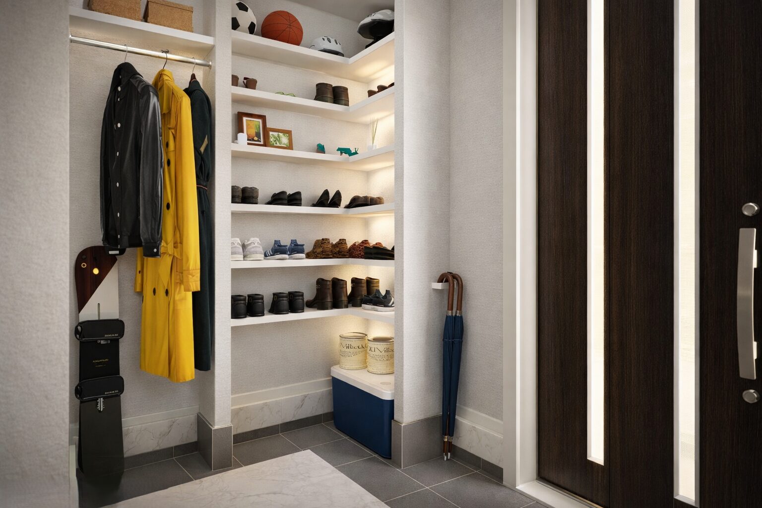 靴・上着・小物まで置き場が決まり、帰宅後の“玄関渋滞”を減らします。