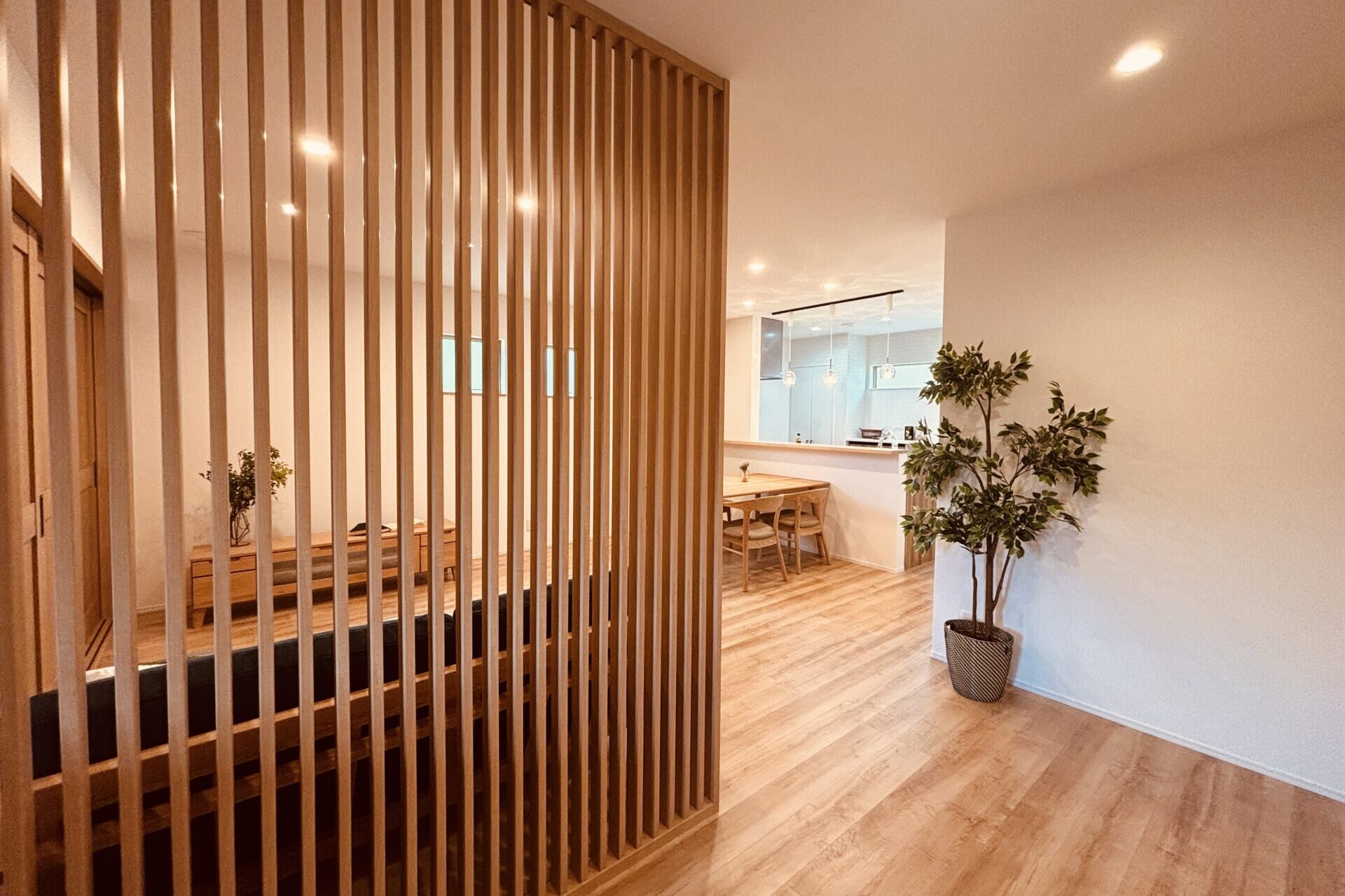 光と風を部屋全体に届ける、こだわりの「格子」間仕切り。