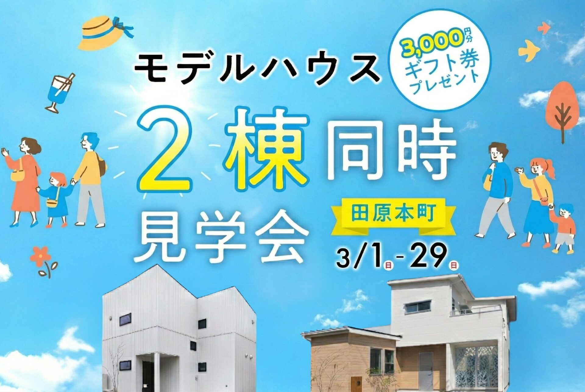 【3/29(日)まで】2棟同時見学フェア<選んで♪見て♪体験♪家づくり初心者のための無料イベント>