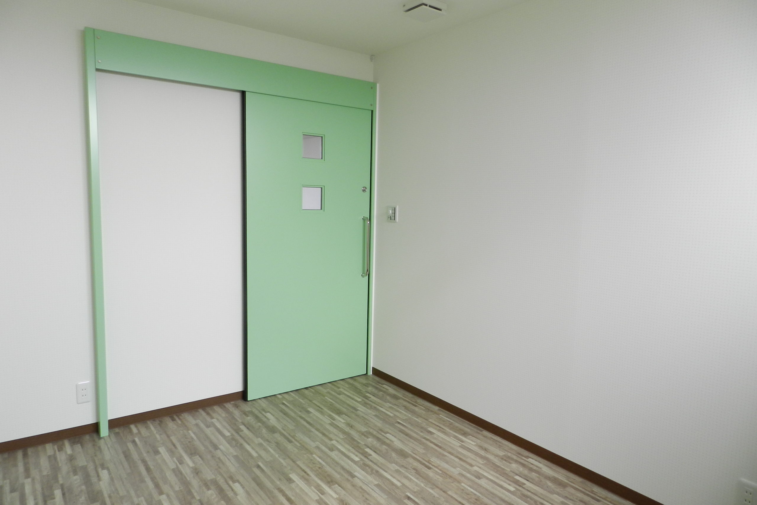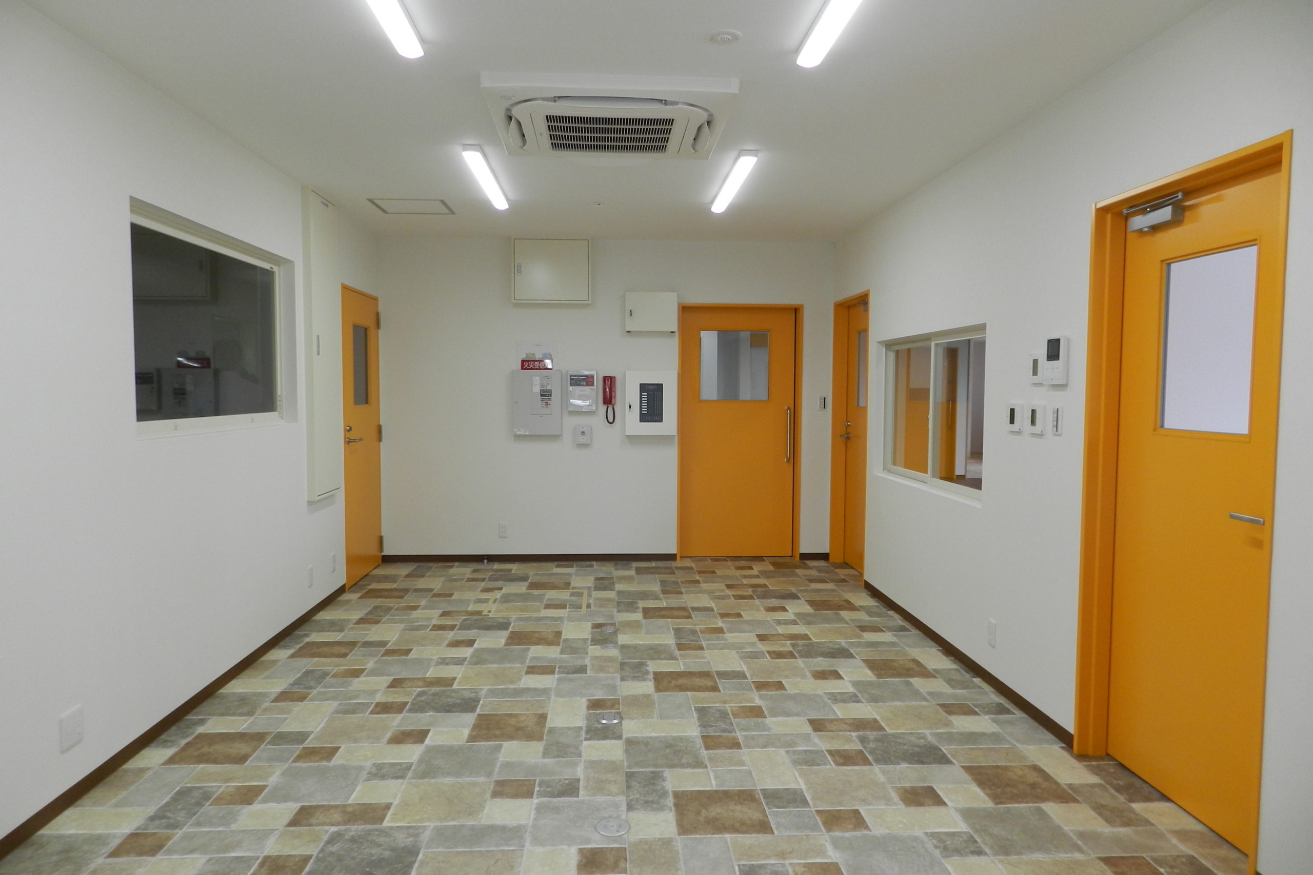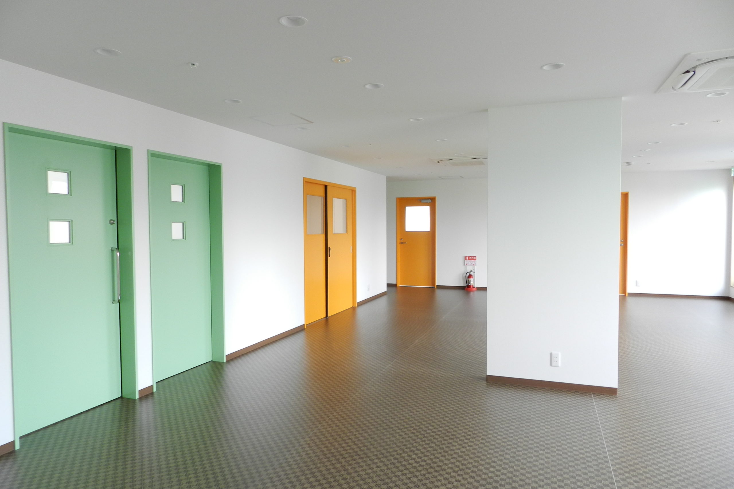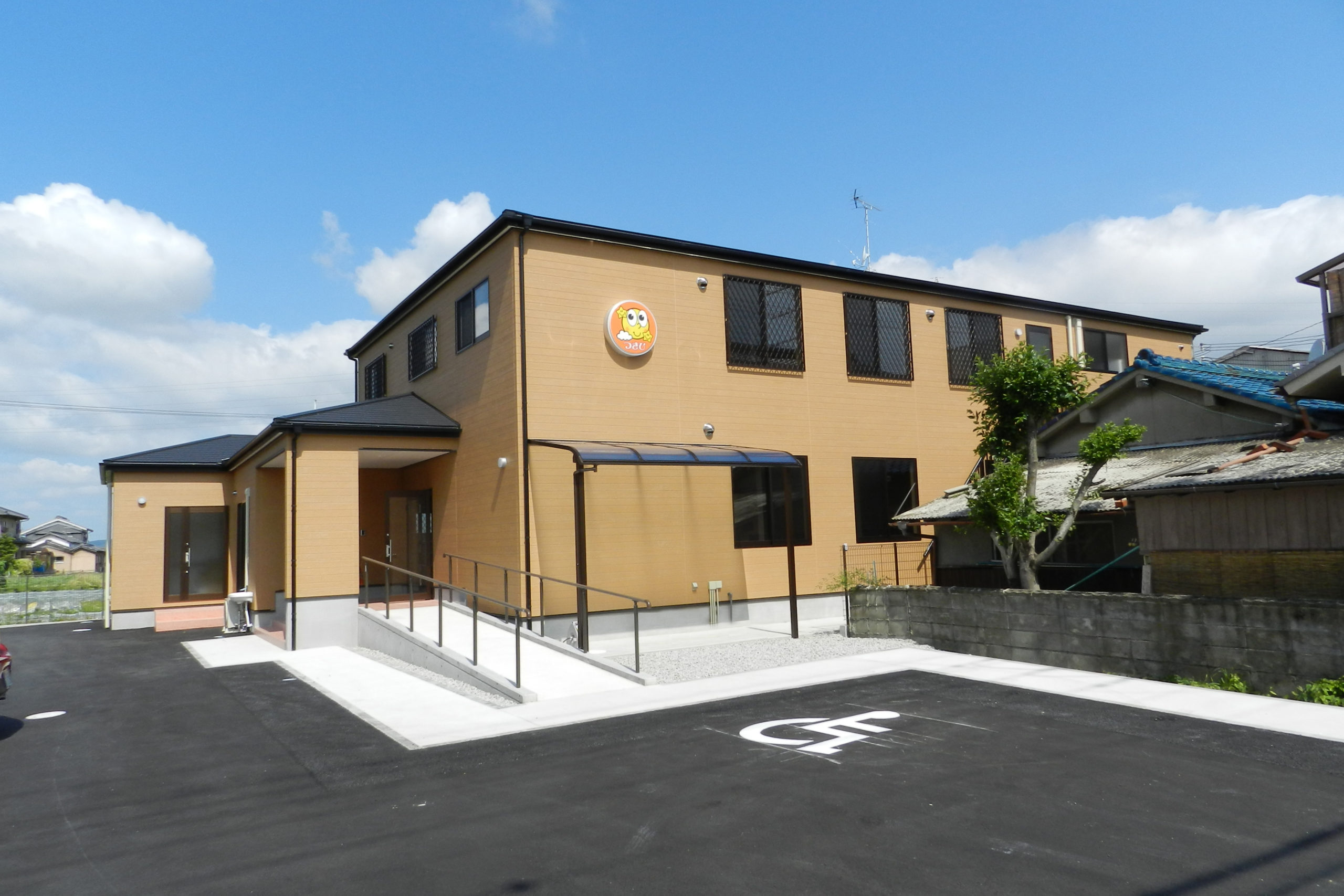障害を持った子供たちを受け入れる、民間の社会福祉施設の建築工事でした。 それまで運営されていた施設では宿泊者を受け入れるスペースがほとんどなく、できるだけ多くの子供様がショートステイできるような設計がご希望でした。 管理スペースを中央に配し、日中も夜間も安全第一に管理ができるようにと考えて設計させていただきました。