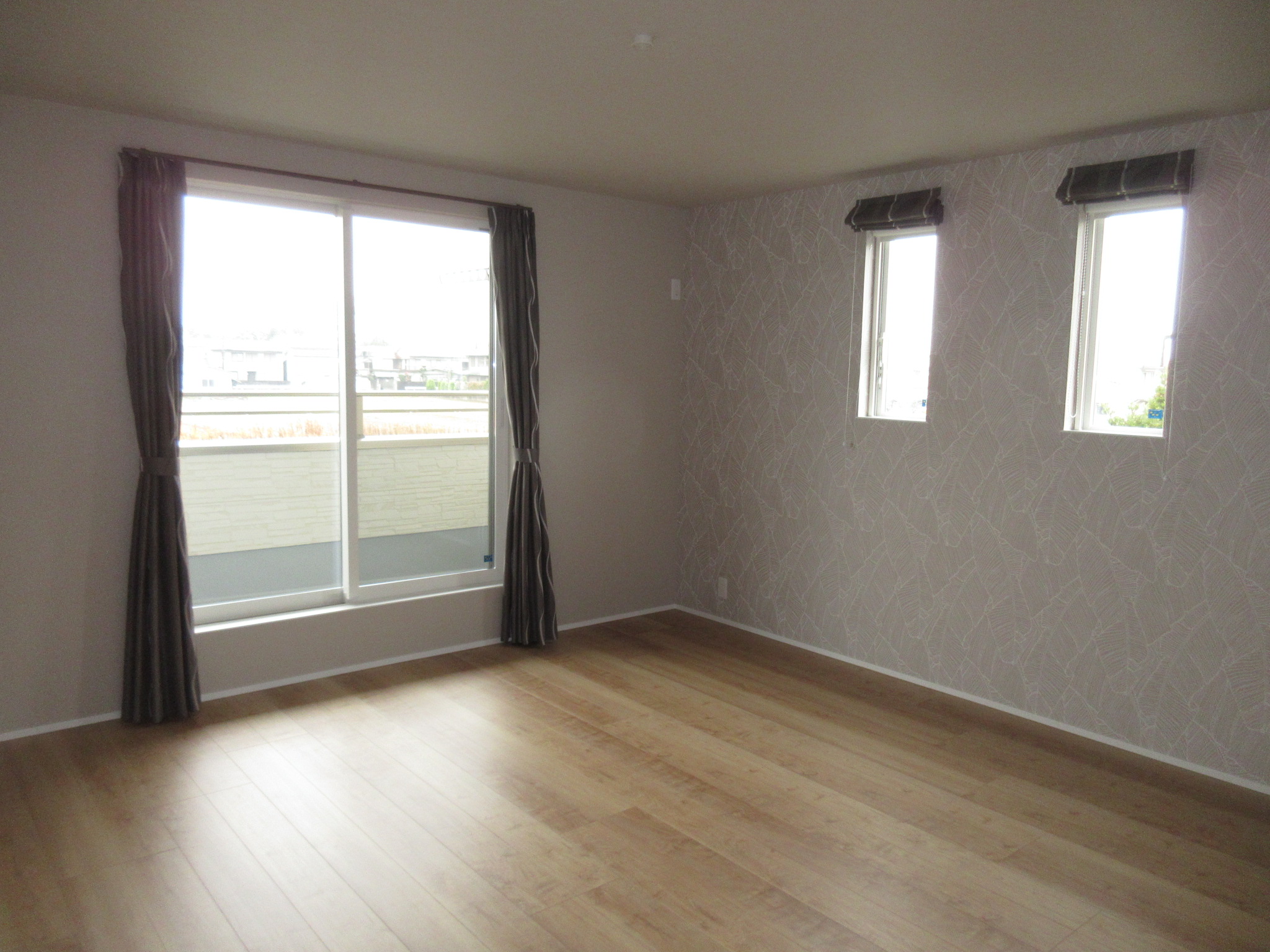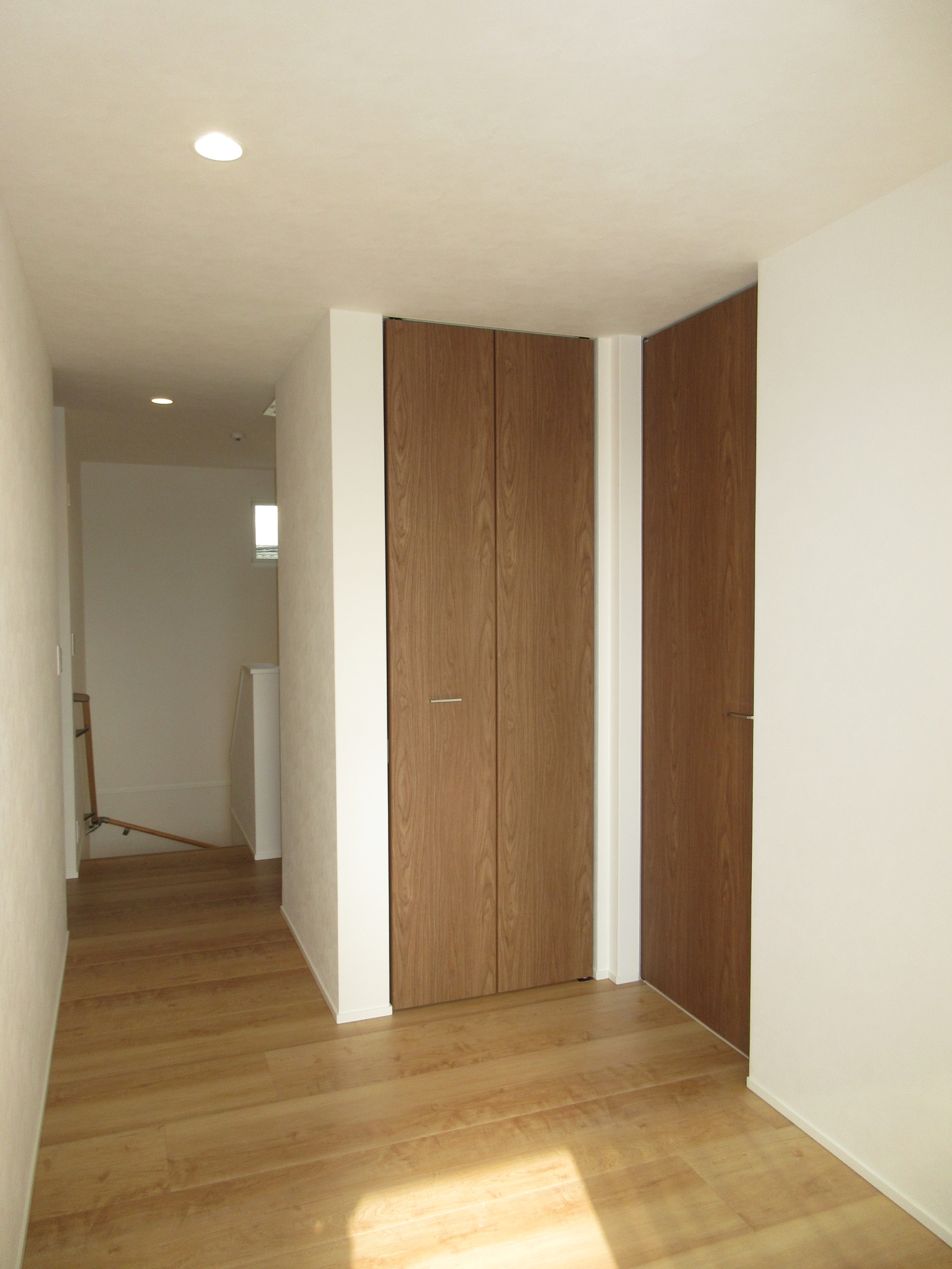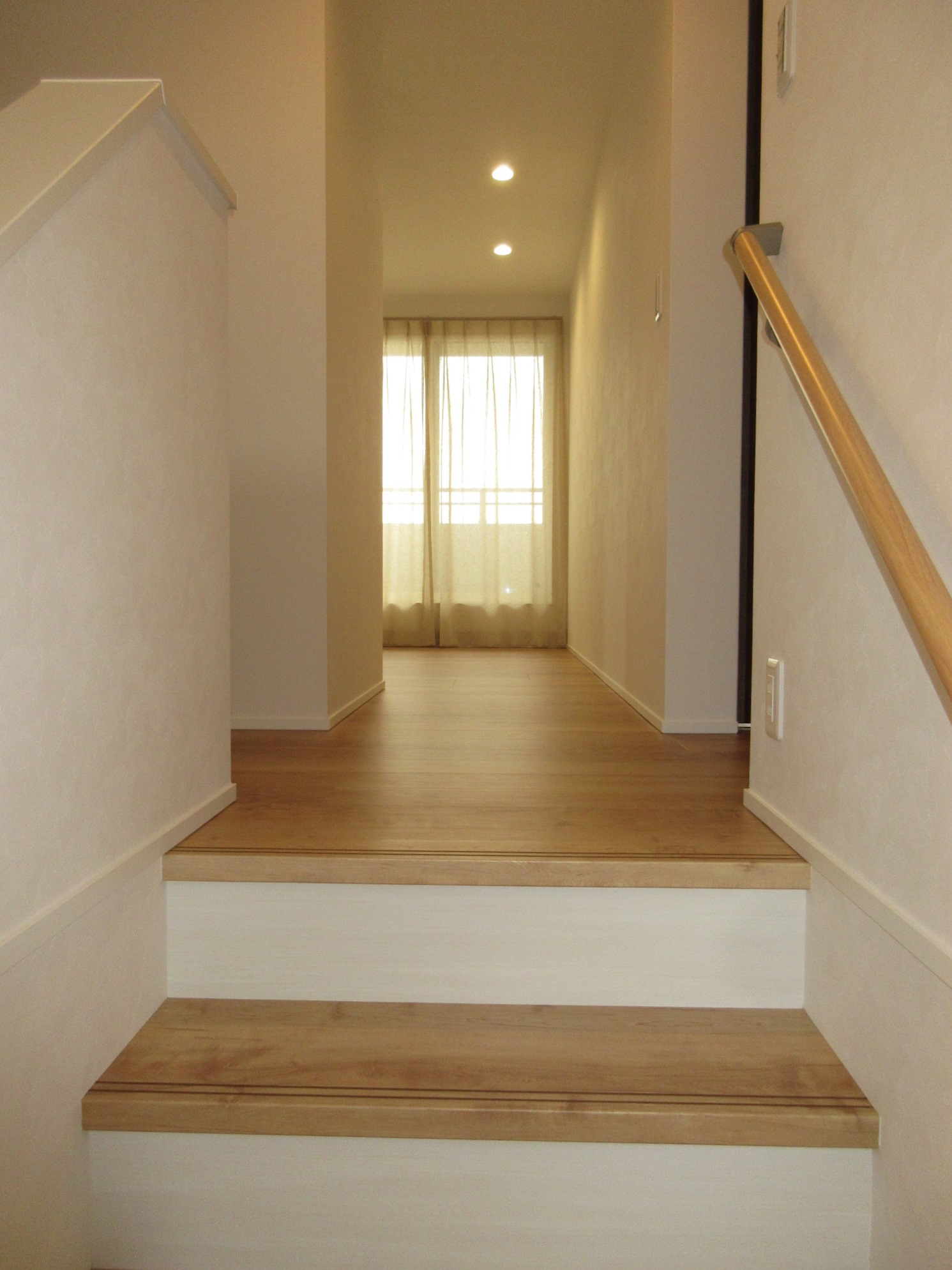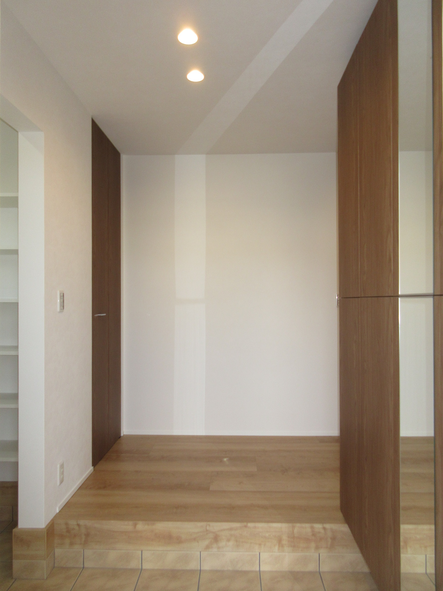 天井まであるフルハイドアと、リビングの表し梁を出すことで開放感を演出しています。 また、ダイニングテーブルを置かず、キッチン前に畳コーナーを設け、座って食事をするというスタイルもお客様のご希望の1つでした。