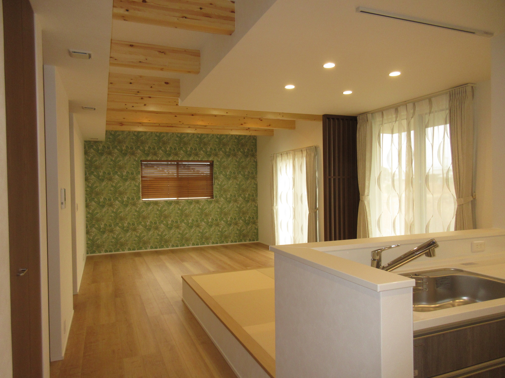 キッチン前に畳コーナーを設け、食事後も畳でくつろぐげるスタイルのおうち