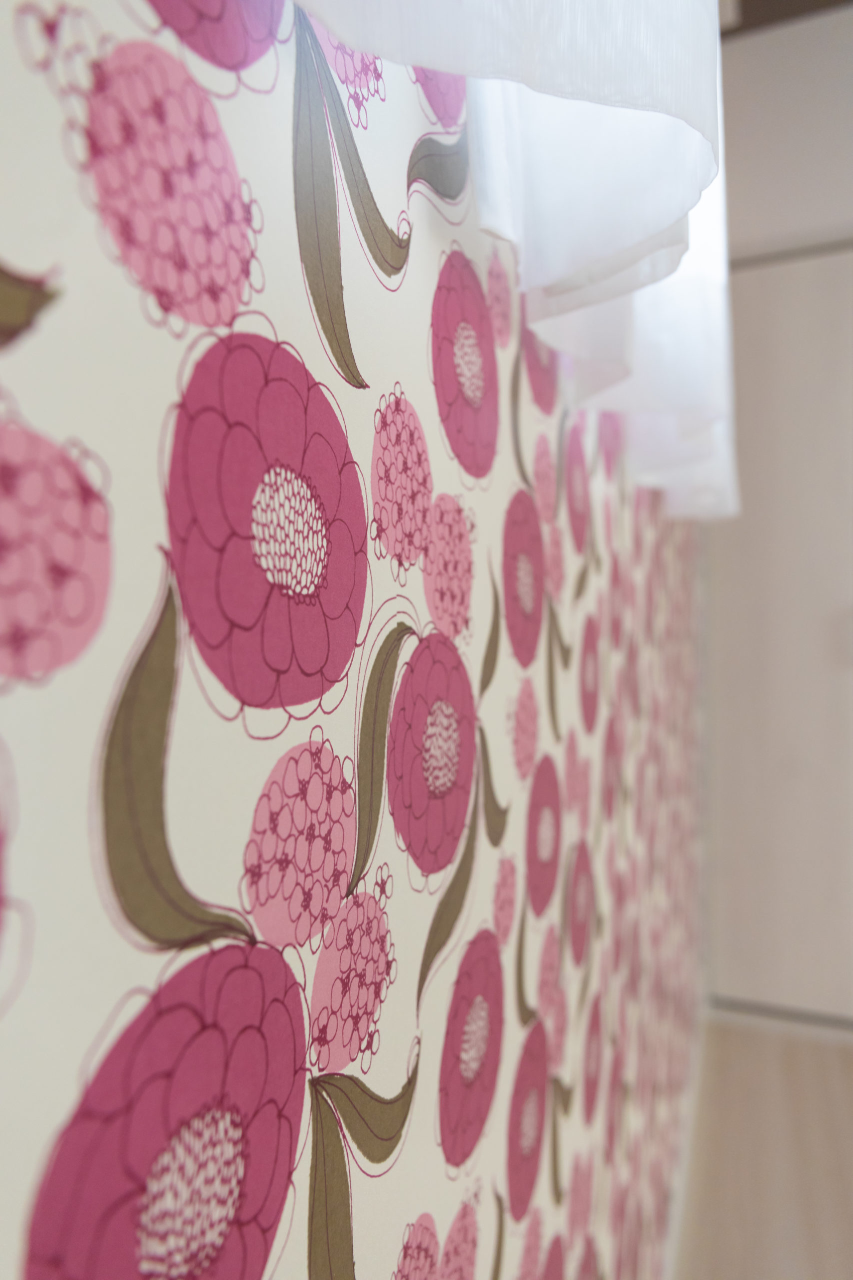 リビングの一面には素敵な壁紙が!