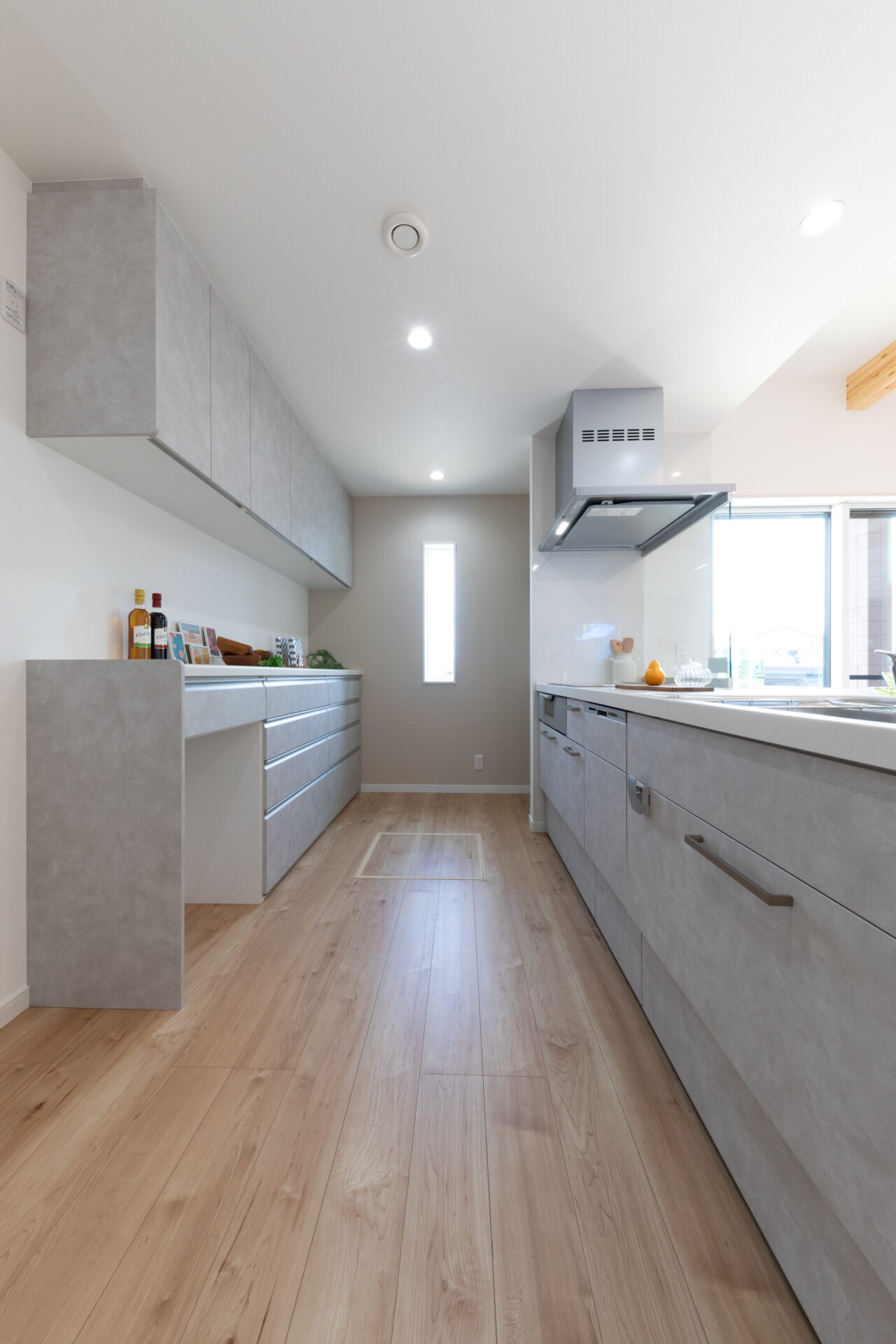 家族とコミュニケーションをとりながらその空間の中に書斎も取り入れた間取り。 こだわりの造作本棚も圧巻です。