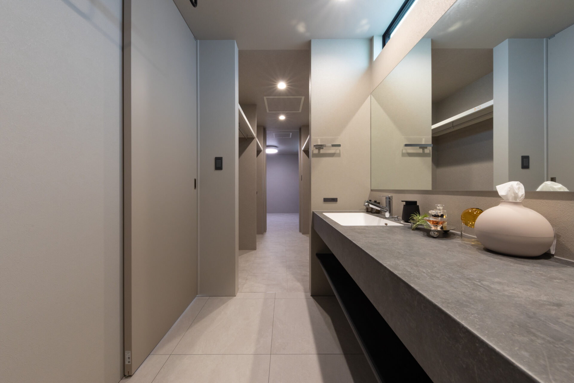 四季折々に表情を変える眺望が美しいホテルライク仕様のお家 眺望を楽しめるインナーバルコニーが非日常的な空間を演出 リビングには観葉植物がたくさん置ける暖かな日差しの注ぎ込むスペースを確保 正面からみた窓配置も映える外壁デザインもスタイリッシュ感満載 高級感を醸し出す造作洗面台や一面窓の浴室などホテルのような空間です! 日々の生活がワンランクUPですね