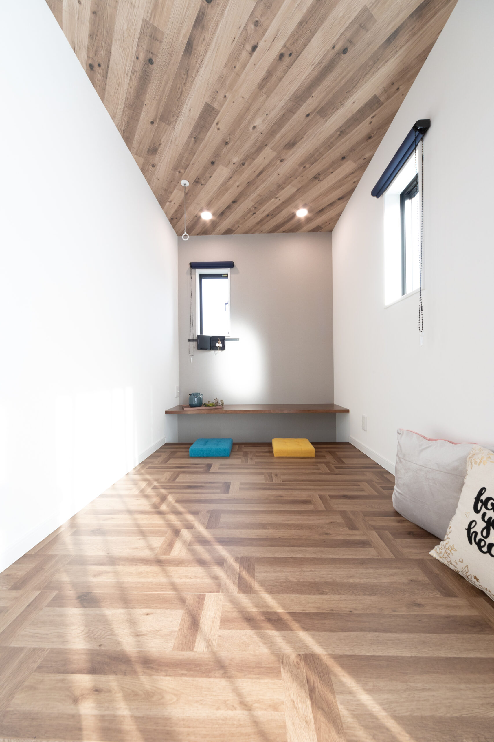 インナーガレージで愛車と共に趣味空間!吹き抜け窓から光溢れる明るくオシャレな家