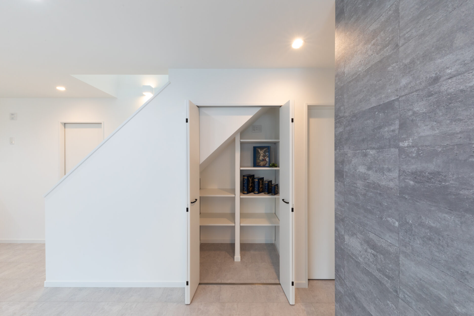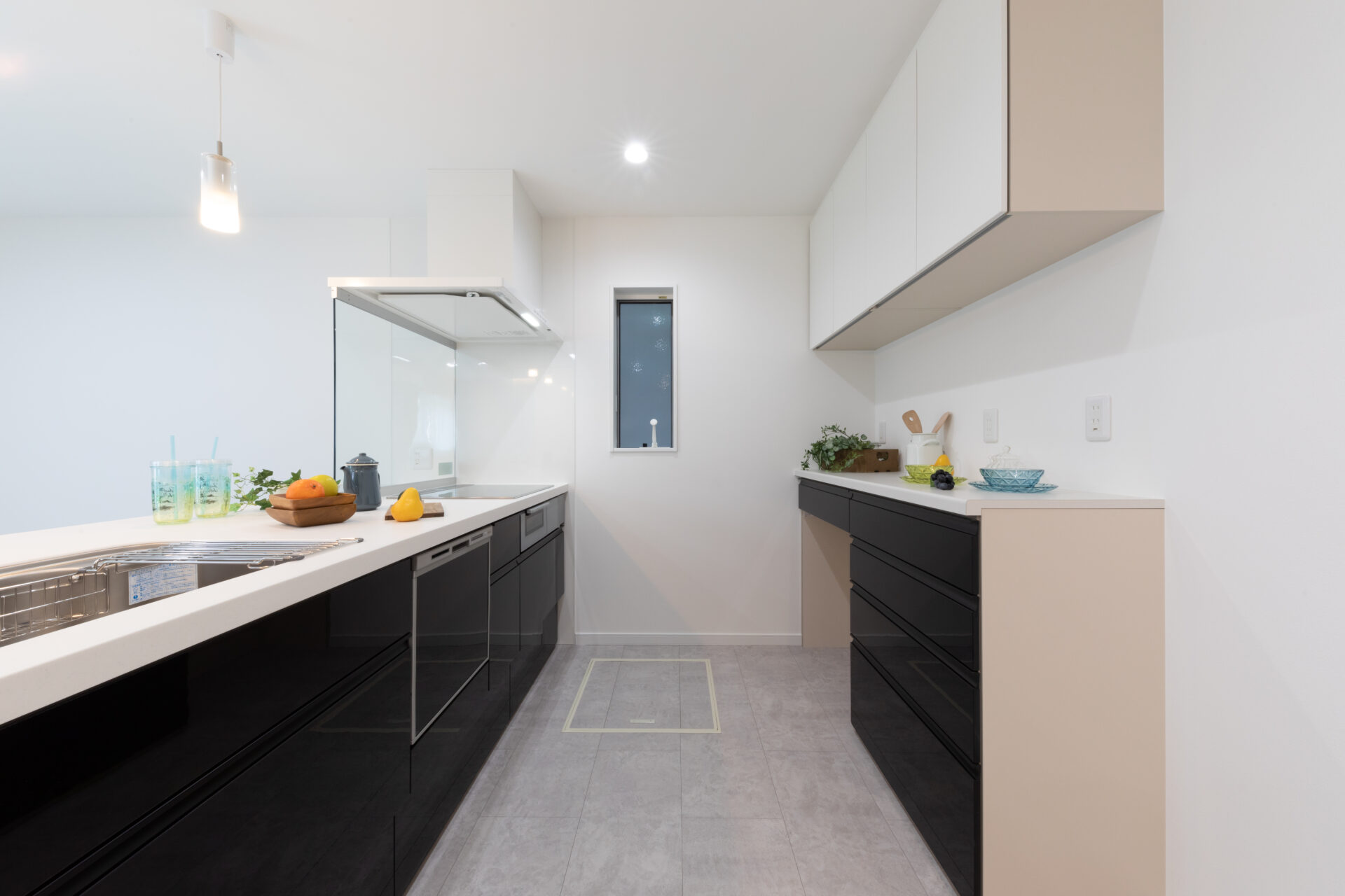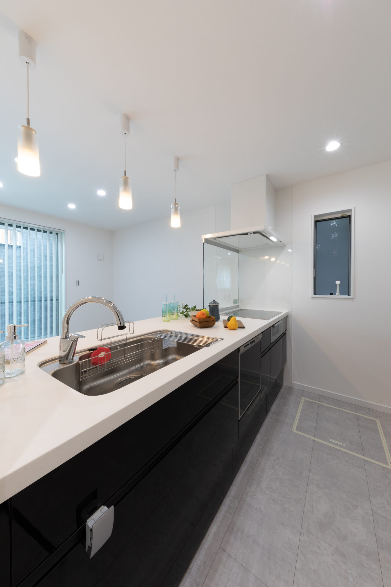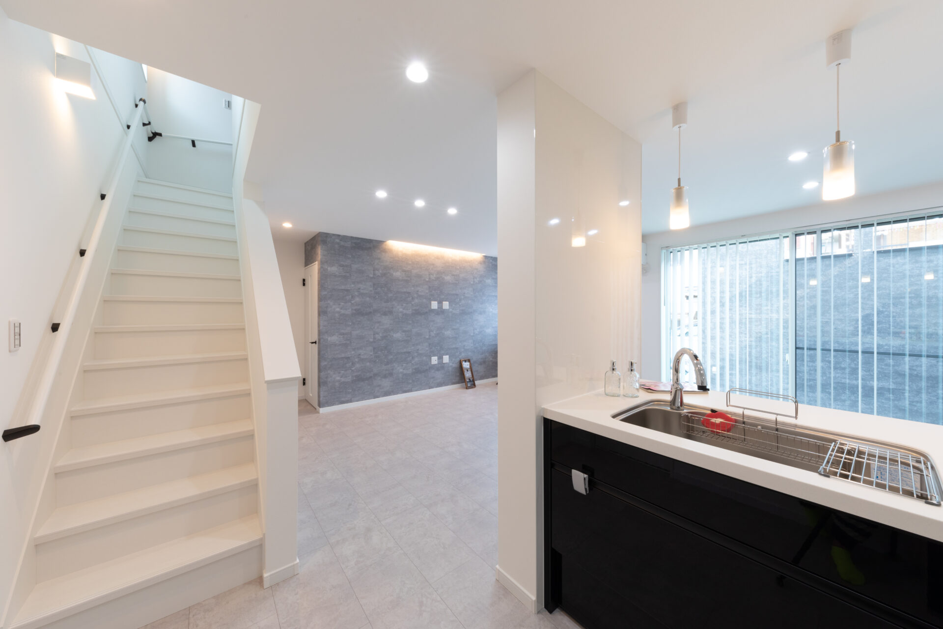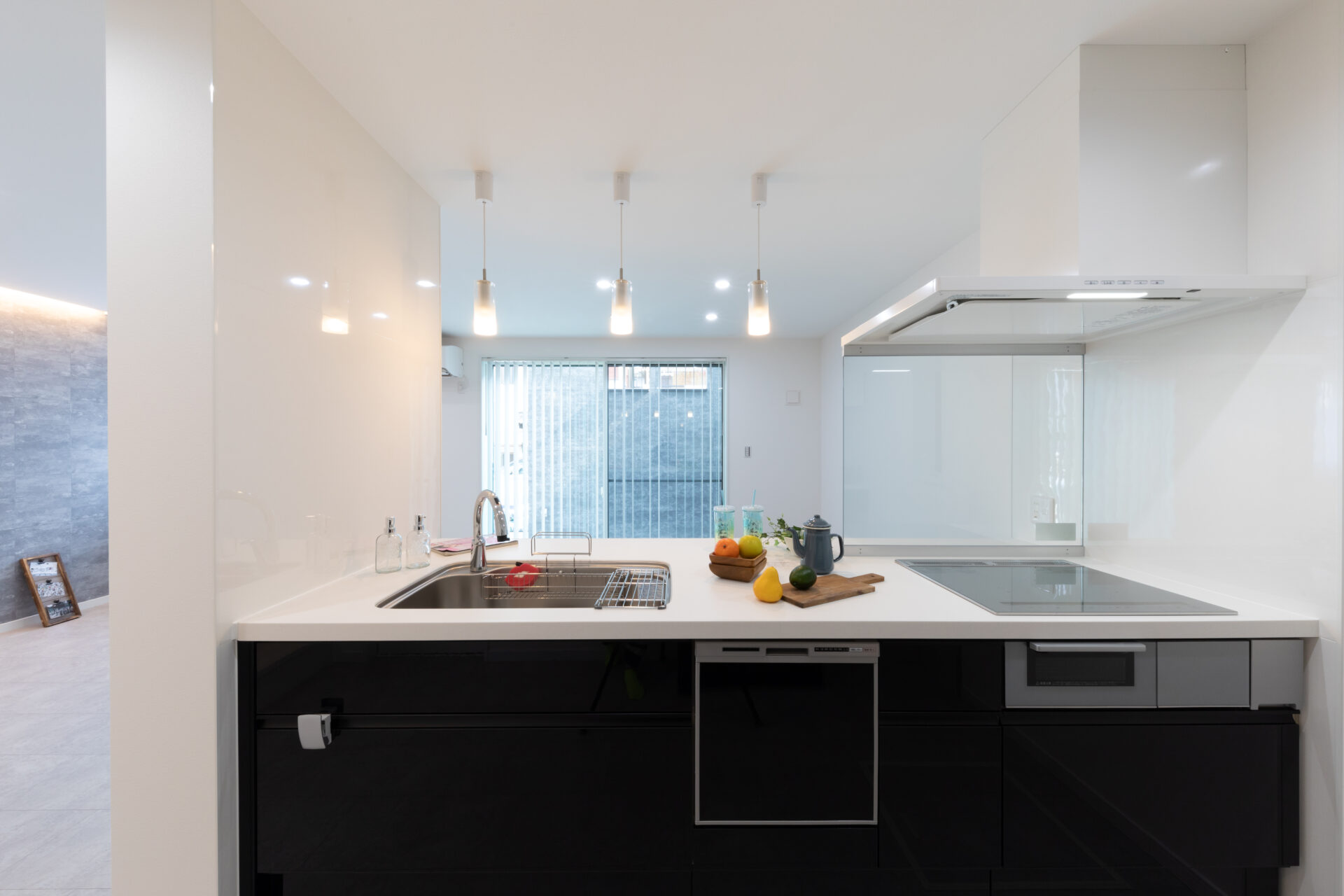 白とダークな色使いでクールな表情のシンプルモダンのお家