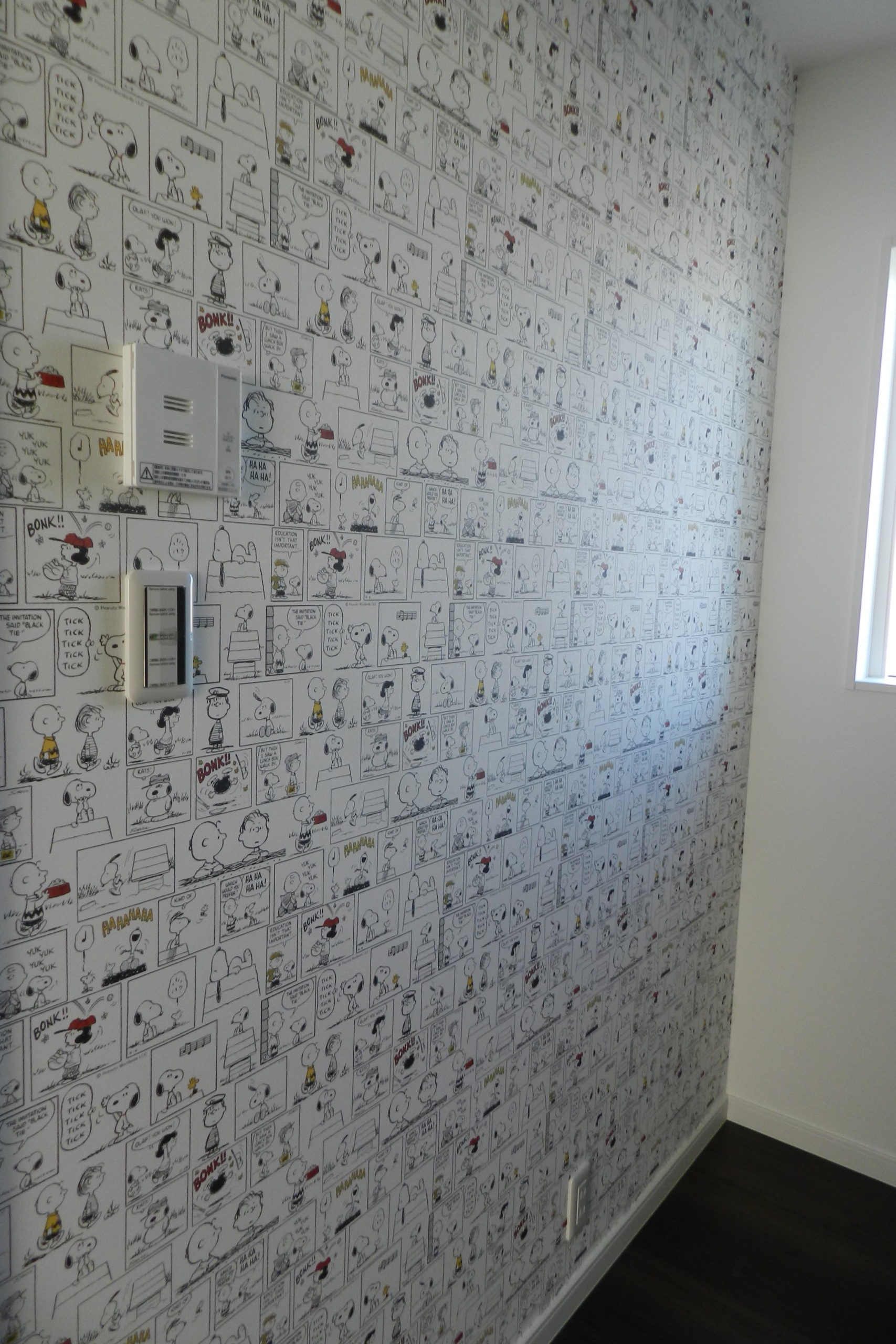 リビングのテレビ台の壁面にはカームウッドベージュのエコカラットを採用。
