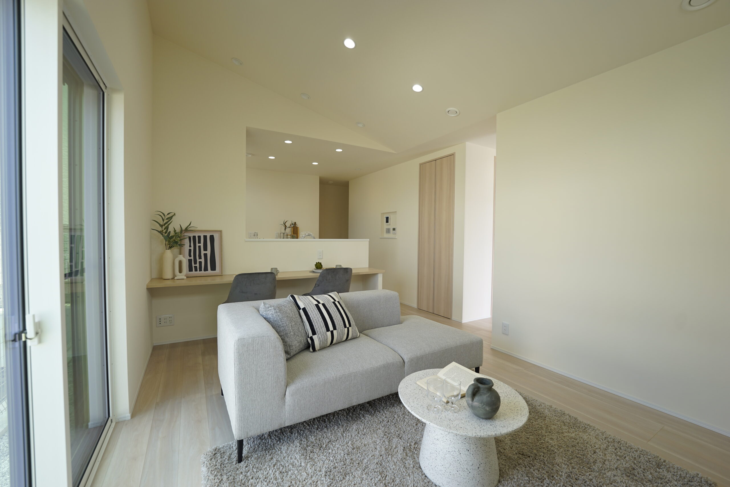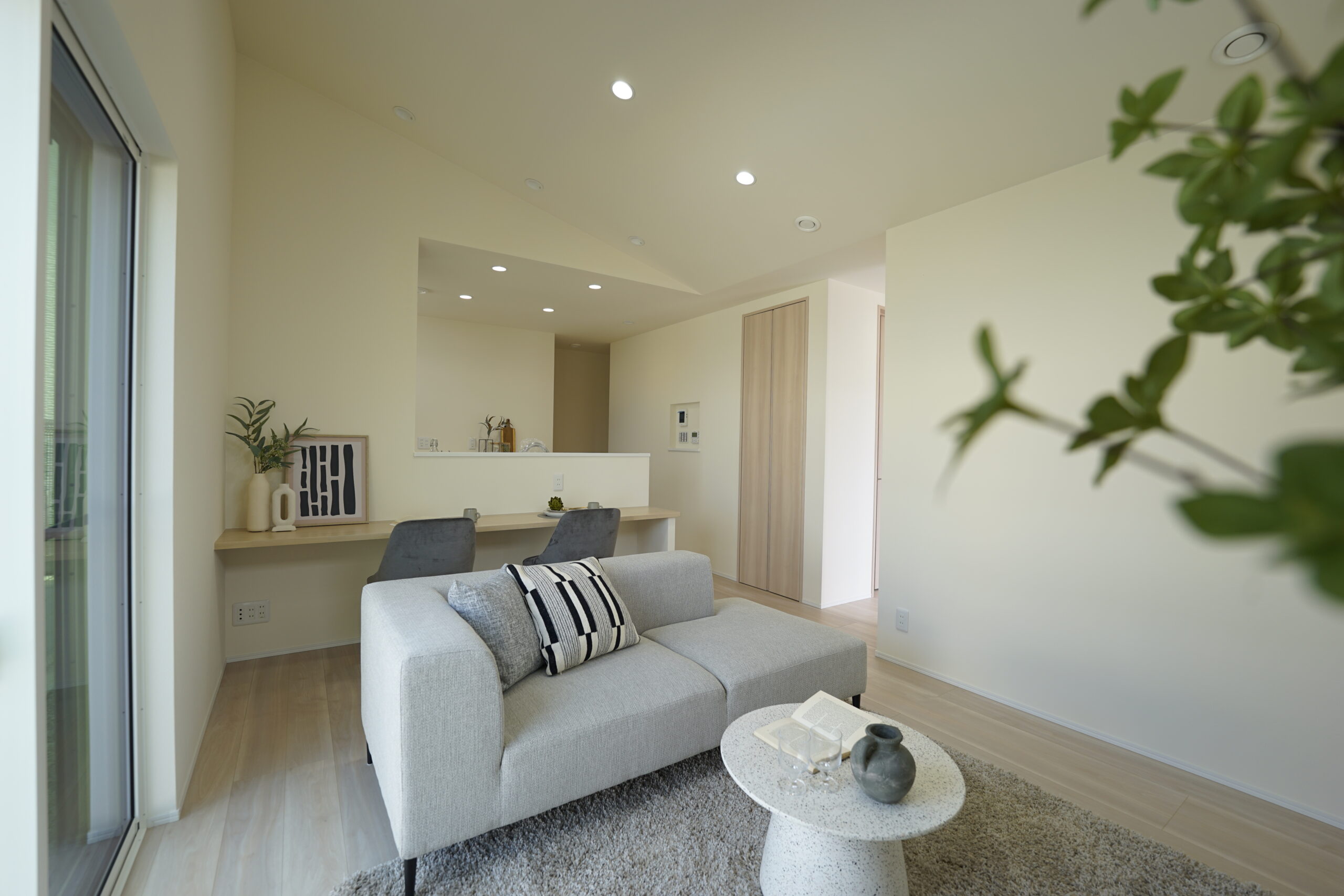 勾配天井がリビングに広がりを生み、心地よい開放感を感じられる住まいです