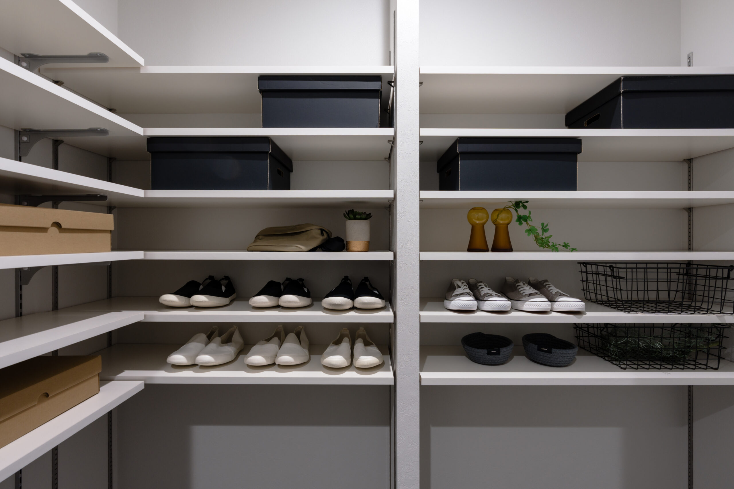 家族全員の靴がしまえる大容量シューズクローゼットと、広々とした洗面スペース