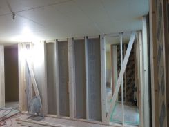 その後、天井・壁のボード貼りや窓枠と建具枠の取付を行いました。