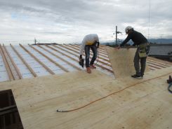 最後にアスファルトルーフィングを張って、一日の作業が完了しました。